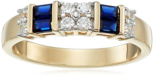 -. Feature : Imported / Yellow gold ring in polished finish featuring alternating round white sapphires and baguette-shape created blue sapphires