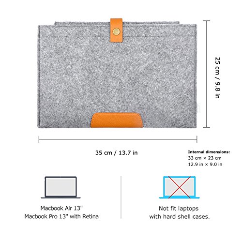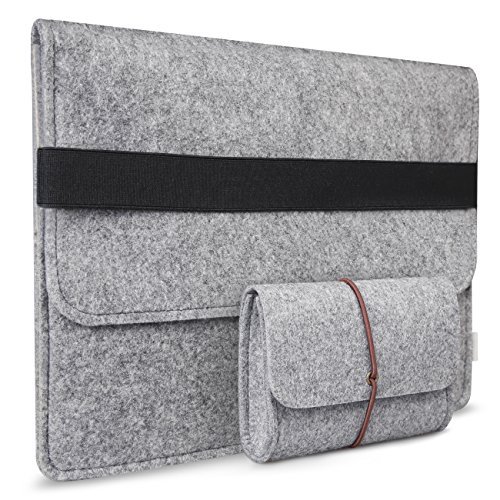 Inateck 13.3 Inch MacBook Felt Sleeve for MacBook Air, Macbook Pro Retina and Other Ultrabooks Netbooks, with Card Slot and Accessory Pouch - Gray