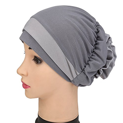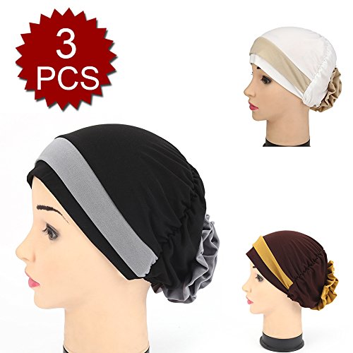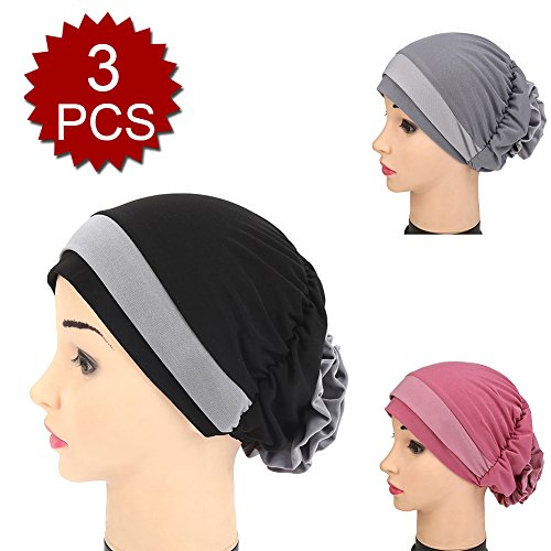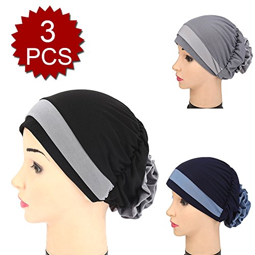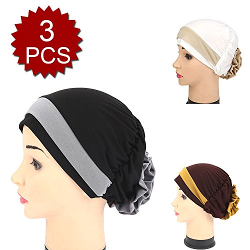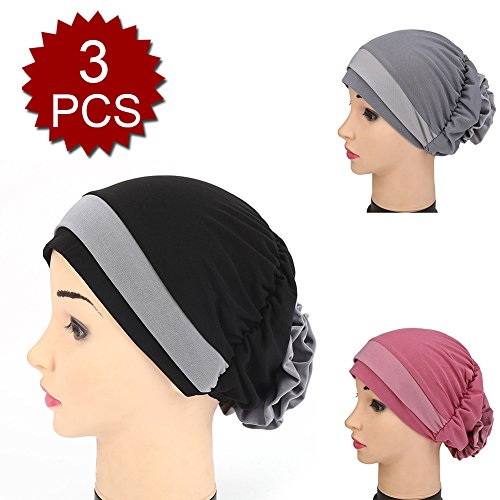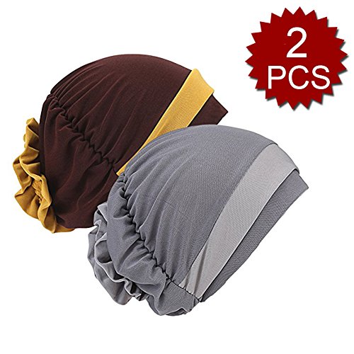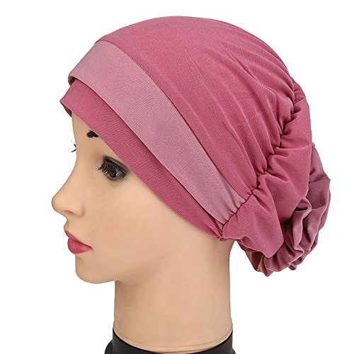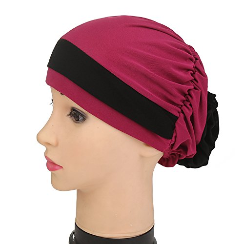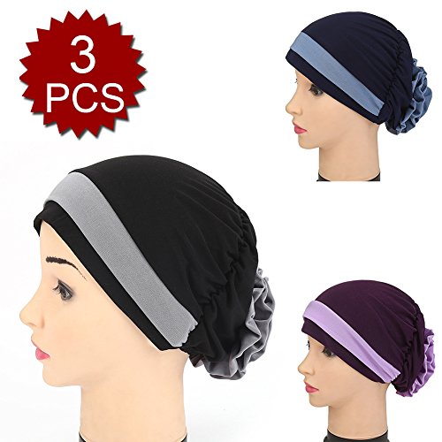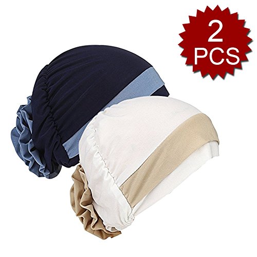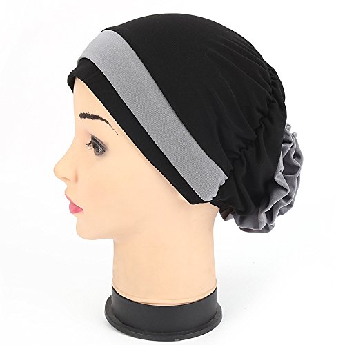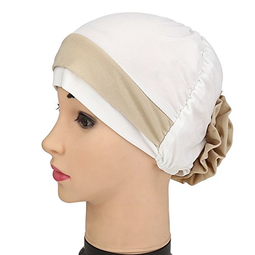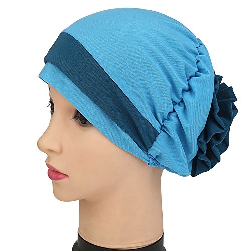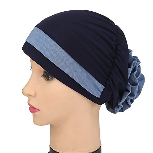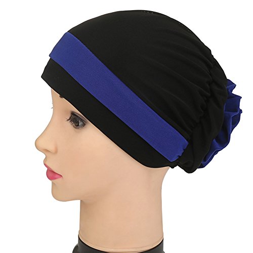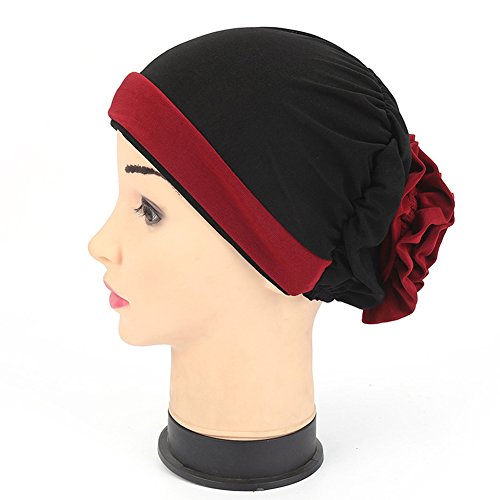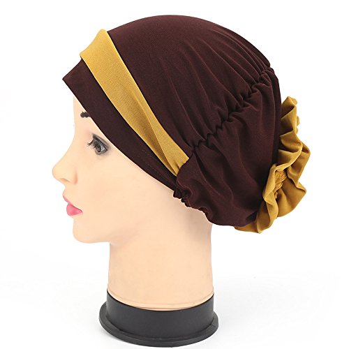 | (Price/piece)Opromo Women's Elegant Strench Flower Block Color Muslim Turban Chemo Cancer Cap |