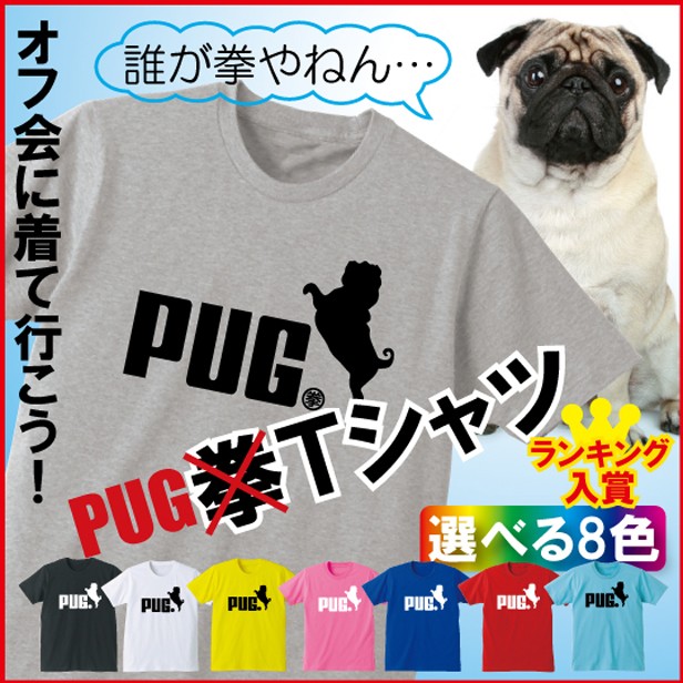 パグPUGのスポーティロゴTシャツです。なんだか可愛いパグシルエットの横には拳マーク!!ちなみにパグという名前は“拳”という意味だそうです。Tシャツのカラーは8色から選べるようになりました!パグのシルエットに関しましてはパグをリアルにトレースするとシワっシワで不気味だったので(笑)可愛らしくシンプルに仕上げています!パグファンspecial好きな方にオススメ!パグ服・パググッズ!ぬいぐるみみたいな可愛いパグをTシャツにしました!