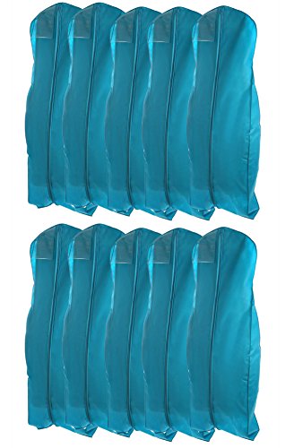 -. Binding : Kitchen -. Brand : Bags For Less -. Color : Turquoise -. EAN : 0799475250712 -. Feature : GARMENT BAG: 24" Wide x 72" Long x 10" side gusset / PREMIUM MATERIAL: Made from Eco-Friendly 100% 75+ GSM Non Woven Polypropylene Recyclable material.Breathable, soft, cloth like durable material. This acid free and eco friendly bag will prevent yellowing, preserve freshness and prolong fabric life. / FEATURES: 10" Gusset accommodate any style gown and/or with long train. Also good for BRIDESMAID GOWNS and pageant gowns. Also included is a clear vinyl hanging pouch for labeling and to know what is inside / QUALITY: Bag is rip resistant, Full length center zipper that is snag free, reinforced hanger opening to ensure a long lasting garment bag. / USES: Perfect for everyday use as well as for long term storage -. IsAutographed : 0 -. Label : Budget Bags -. Manufacturer : Budget Bags -. MPN : 72PRM -. PartNumber : 72PRM -. ProductGroup : Home -. ProductTypeName : HOME -. Publisher : Budget Bags -. Studio : Budget Bags -. Title : Bags for LessTM Breathable Wedding Garment Bag 72" Long Set of 10, Turquoise -. UPC : 799475250712