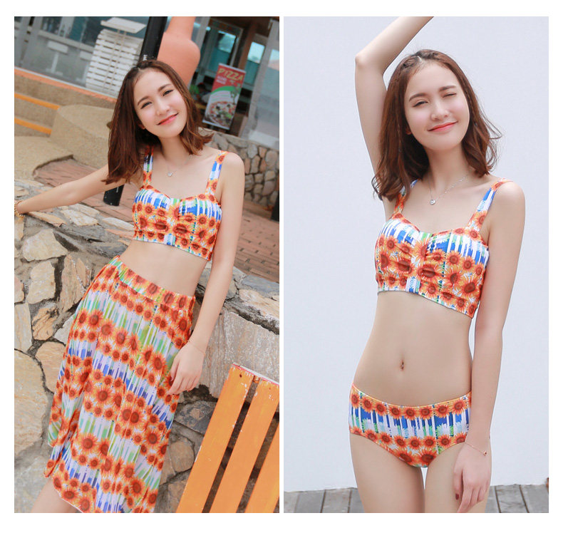 韩版小胸钢托聚拢温泉泳衣女三件套裙式显瘦保守游泳衣
