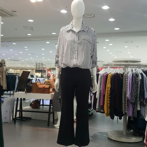 스트라이프셔츠에 밑단셔링이 포인트되는 블루종셔츠입니다