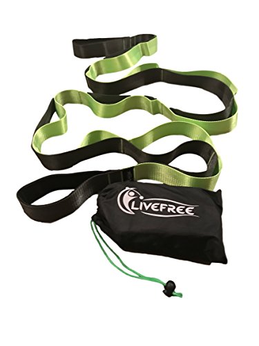 Yoga Stretching Strap by LIVEFREE - 8 Feet Long Fitness Stretch Band With 12 Loops - Ideal For Therapy, Injury Rehab, Exercising, Improving Flexibility, Relieving Stiff Muscles - Carry Pouch Included
