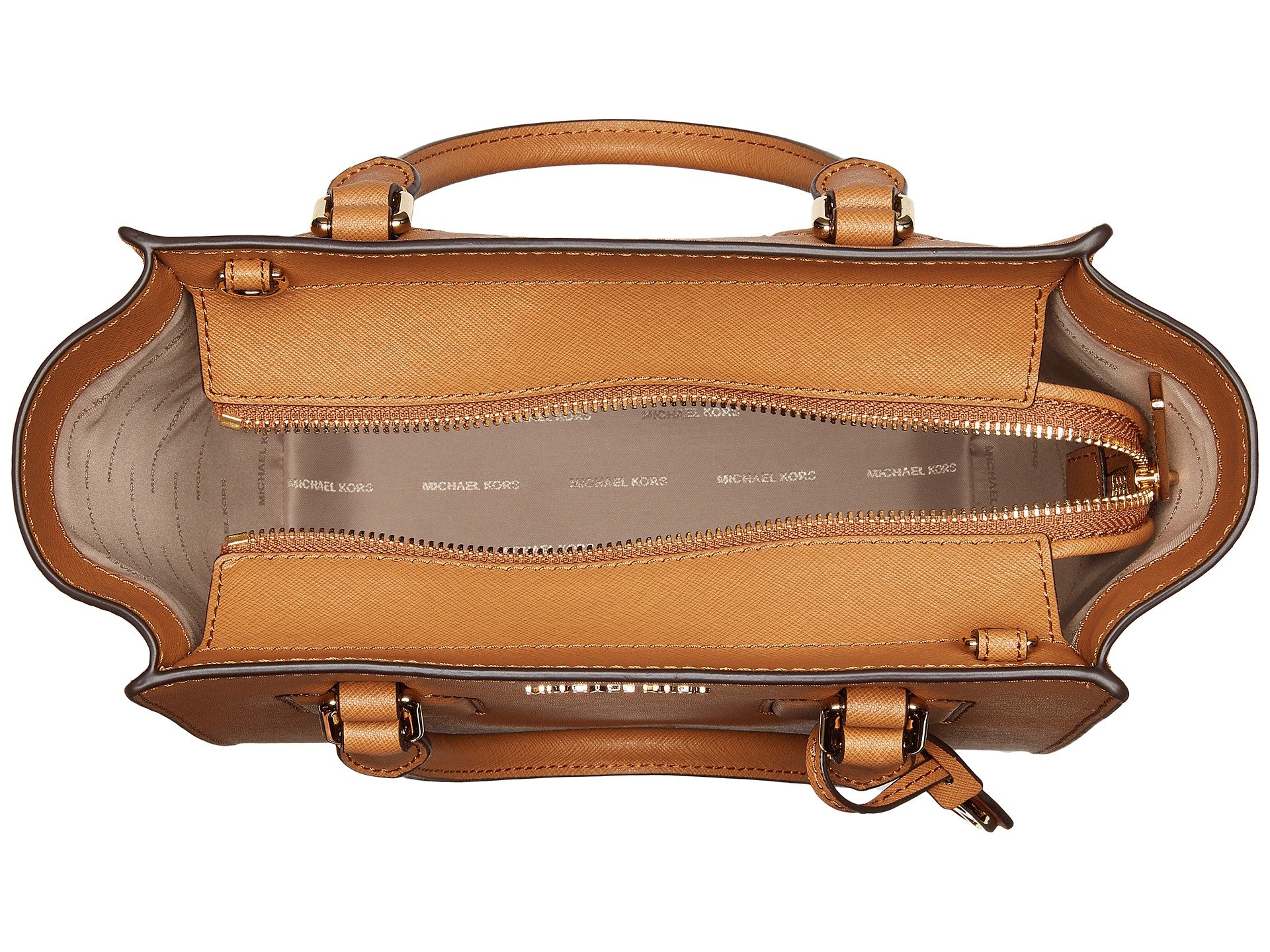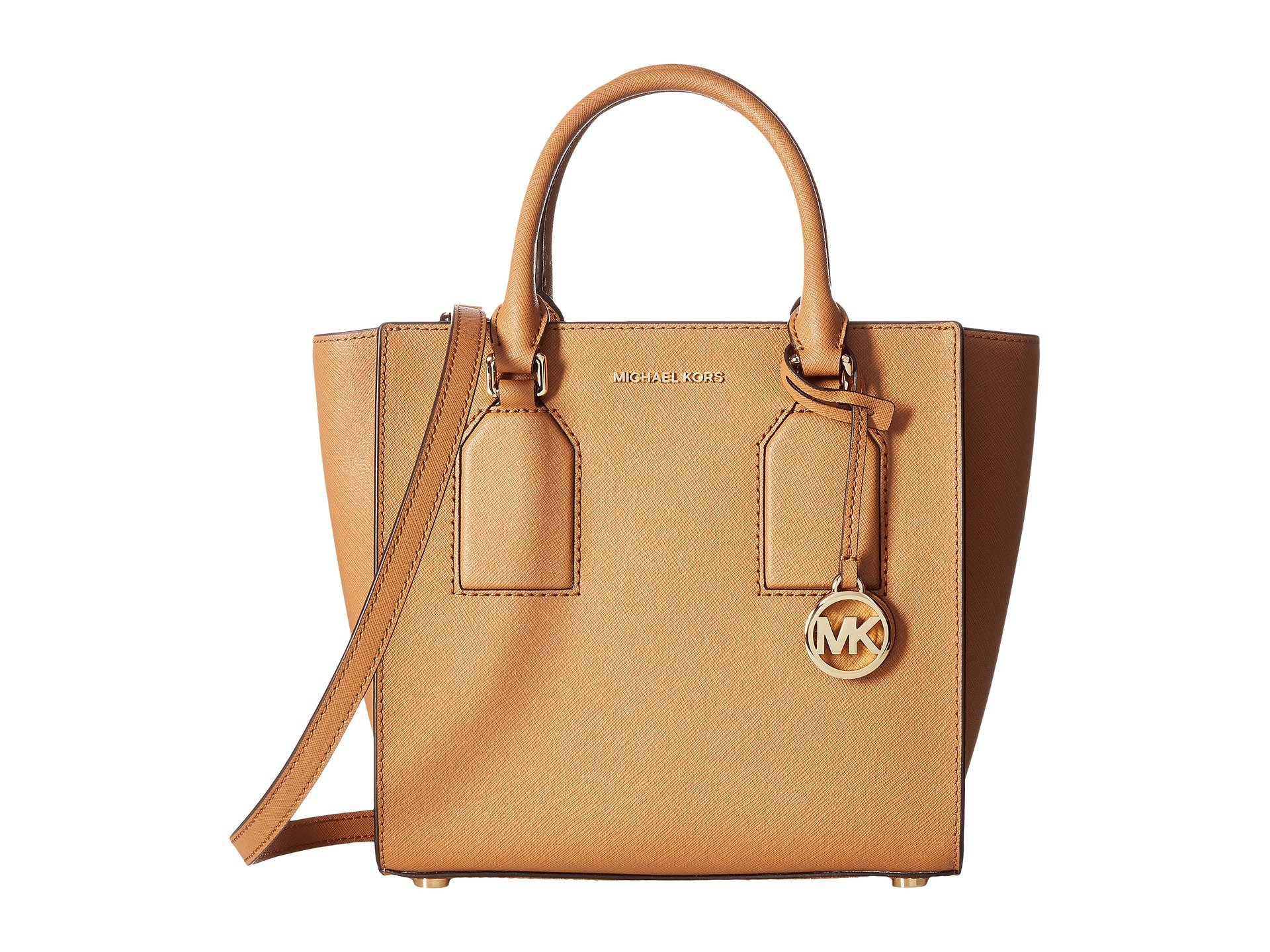 | Product Information SKU: #8976888No matter the time of day this bag is essential for modern day life. Whether it's a quick run for coffee, meeting with friends for lunch, or another day at the office this bag is a must have!Handbag crafted from saffiano leather.Dual rolled top handles, detachable crossbody strap.Gold-tone hardware.Custom woven interior lining features MK design, one zip pocket, two slip pockets, and a key hook.Metal disk feet to protect bag when set down.Imported.This product may have a manufacturer's warranty. Please visit the manufacturer's website or contact us at warranty@support.zappos.com for full manufacturer warranty details.Measurements: Bottom Width: 8 3?4 in Depth: 4 in Height: 8 1?2 in Strap Length: 38 in Strap Drop: 18 in Handle Length: 14 in Handle Drop: 5 1?2 in Weight: 1 lb 10 oz |
