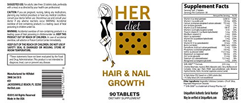 Not everyone is born with a great head of hair, and if you were, age can be a determining factor in how long you get to keep it. Maintaining a sufficient intake of certain vitamins and minerals is essential for maintaining shiny, volumous hair. HERdiet's Hair & Nail Growth contains such nutrients, including: