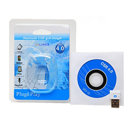 -. Binding : Electronics -. Brand : VAlinks -. Color : Black -. Feature : Connect your Computer/Laptop to Bluetooth Enabled Devices such as headsets, speakers, cell phones, keyboard or mouse and etc. / Adopt high efficiency and eco-friendly Bluetooth 4.0 technology with 3Mbps stable signal transmission speed. / Enhanced Data Rata (EDR) compliant for both 2 Mbps and 3 Mbps modulation modes with gold plated connector. / Backwards compatible with Legacy Bluetooth Equipment Bluetooth 3.0, 2.1, 2.0 and 1.0 Equipment. / Compatible with 32 bit and 64 bit Windows 8.1/ Windows 8 / Windows 7 / Vista / XP, Class 2 Wireless range up to 60 feet /20m. -. Label : VAlinks -. Manufacturer : VAlinks -. MPN : P-1511070112 -. PackageQuantity : 1 -. PartNumber : P-1511070112 -. ProductGroup : PC Accessory -. ProductTypeName : NETWORKING_DEVICE -. Publisher : VAlinks -. Studio : VAlinks -. Title : VAlinks Plug and Play Bluetooth 4.0 USB Adapter 2.4GHz Class 2 Wireless USB Dongle Transmitter Compatible with Windows WIN8, WIN7, Vista 2003, XP 2000, Me 32/64 Bit-White