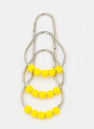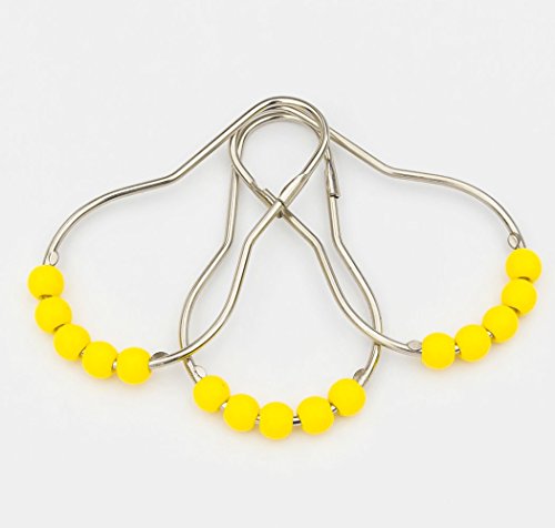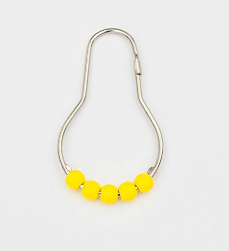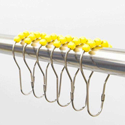 DOTZ Yellow Roller Shower Curtain Rings | Nickel-Plated Stainless Steel Hooks with Easy Glide Roller Balls | Durable and Polished, Won't Snag or Tear | Set of 12