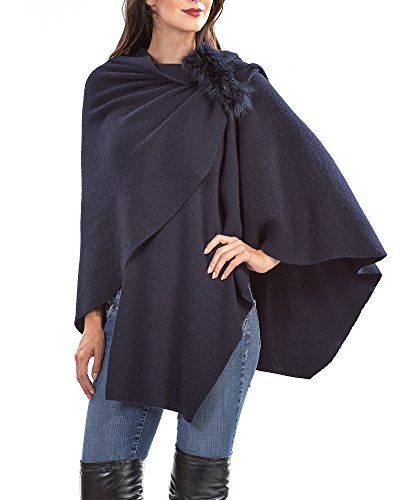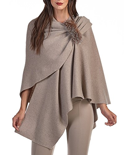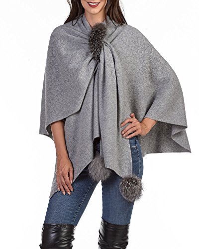 Product Description Our Wool Wrap with Fox Fur Pom Pom and Trim is an elegant design with a twist! The soft Wool shell is bedecked with genuine Fox Fur accents. The wrapping style features a Fox Fur loop to adjust to your style with pom poms for extra pizzazz. 0