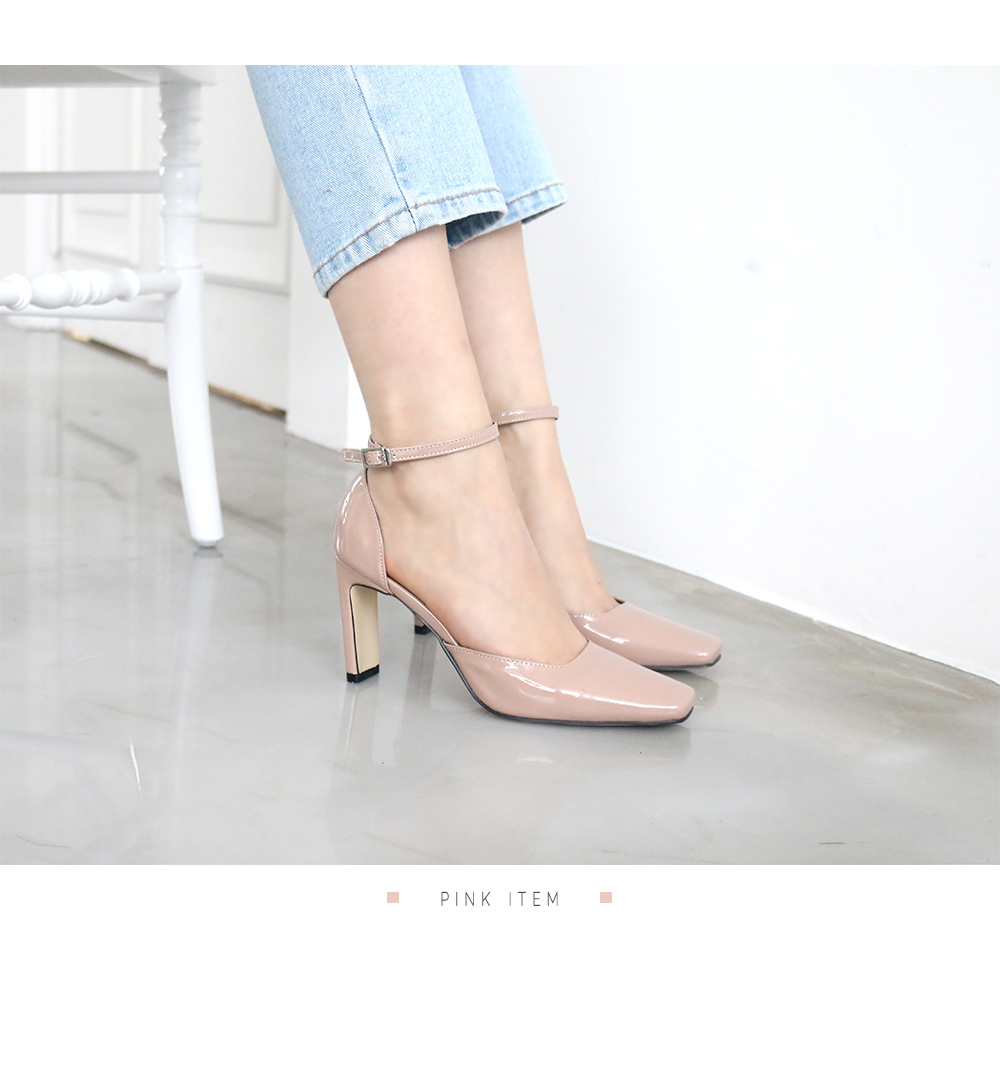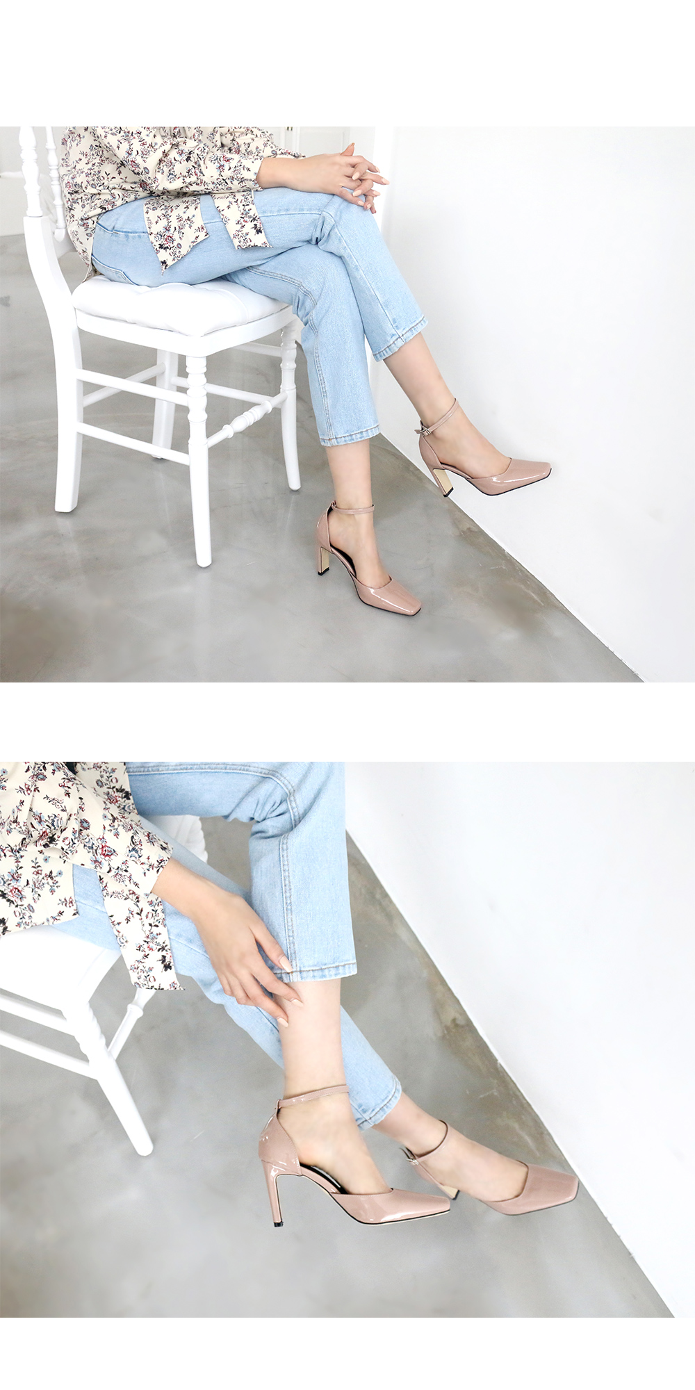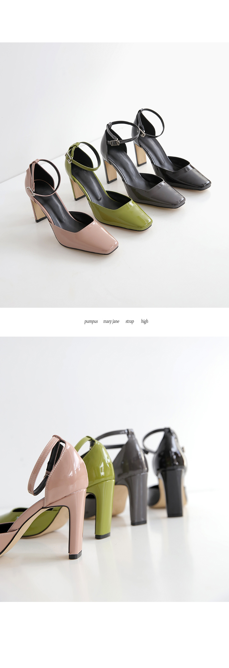 Mary jane square pumps 에나멜 소재의 메리제인 펌프스입니다.
