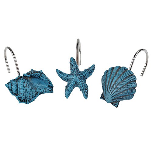 ANDREW FAMILY New 12pcs Decorative Home Bathroom Seashell Shower Curtain Hooks Seashell Starfish Conch-Teal