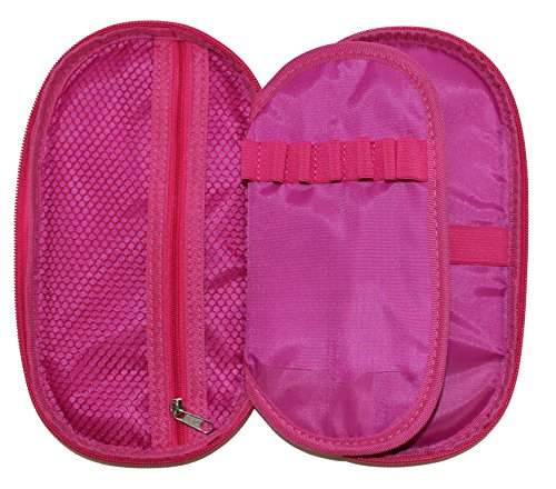 Inkology Oval Glitter Multi Compartment Pencil Pouch with Carabineer Clip, 9 x 5 Inches, Purple, 416-5