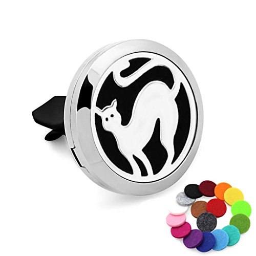 Car Air Freshener Aromatherapy Essential Oil Diffuser-Cute Cat Stainless Steel Locket,17 Refill Pads