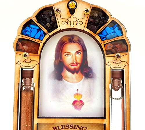 - Home Blessing Wall Hanging Sacred Heart of Jesus Catholic Gift with Holy Water & Soil