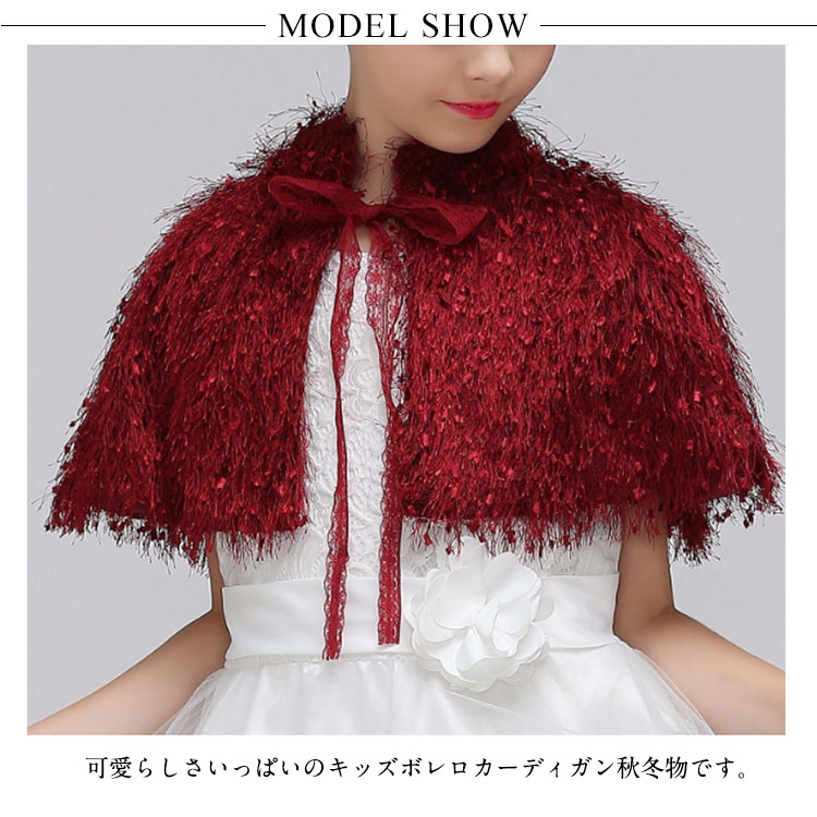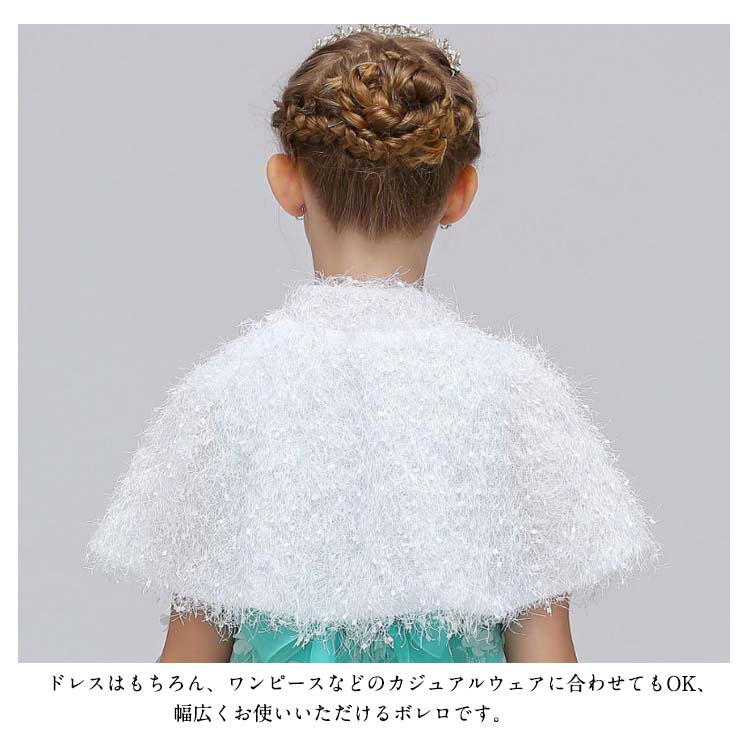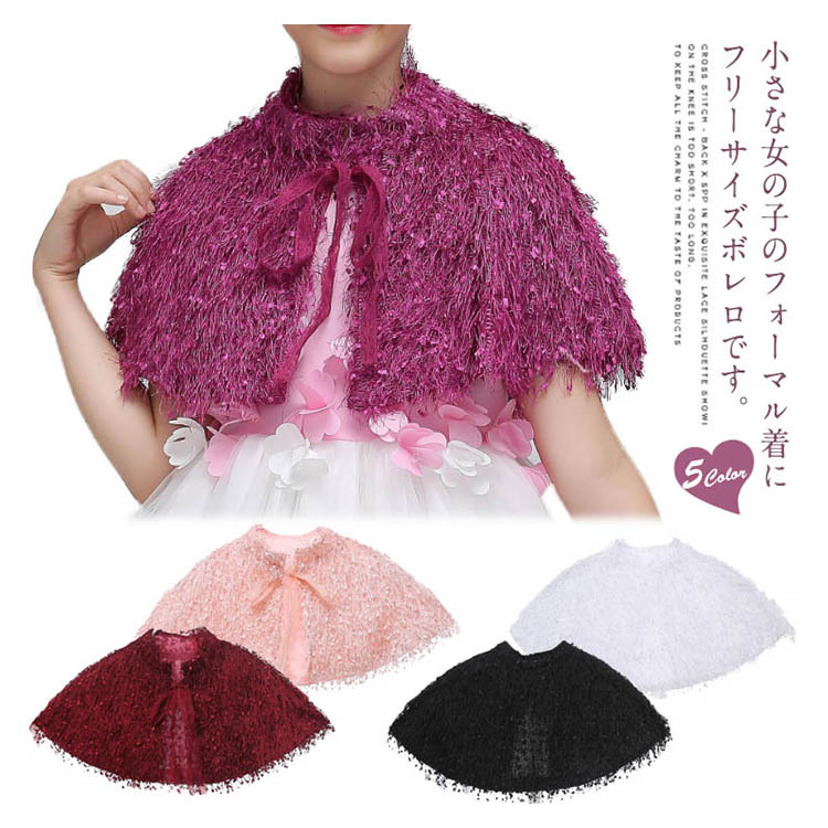 | 小さな女の子のフォーマル着にフリーサイズボレロです。可愛らしさいっぱいのキッズボレロカーディガン秋冬物です。子供フォーマルドレスや入学式ワンピース、おでかけワンピにぴったり。ドレスはもちろん、ワンピースなどのカジュアルウェアに合わせてもOK、幅広くお使いいただけるボレロです。 | |