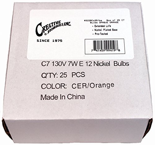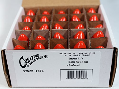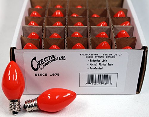 Creative Hobbies Box of 25 Light Bulbs -C7, Steady Burning - Opaque Orange - 7 Watt, Extended Life, Nickel Plated Candelabra Base -Great for Night Lights, Decorative Lights and Halloween Strings
