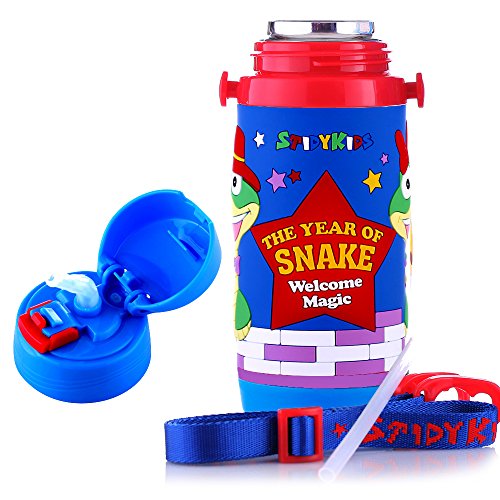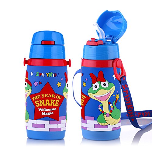 Vacuum Insulated Stainless Steel Water Bottle With Straw, 12-Ounce, Sports Water Bottle For Kids (Blue Snake)