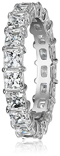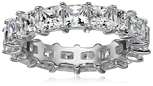 -. Feature : Platinum-plated sterling silver eternity band featuring P.R.Incess-cut Swarovski Zirconia / 7.5 cttw equivalent / Imported