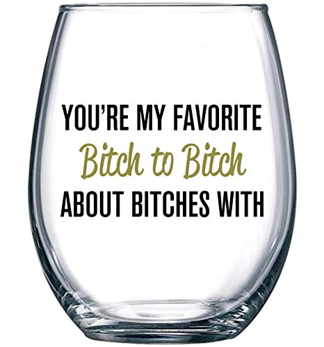 CAUTION: Drinking wine from this libbey glass may cause one to gossip about their favorite bitch! Ever ask yourself "I need a wine glass that fits my style?" This wine glass is the perfect choice after a long, rough day or a humorous start to enjoying a drink with friends. This wine glass quote will ring true with most best friends and start a conversation of laughter and jokes. WINE LOVER? WINE ENTHUSIAST? OCCASIONAL WINE DRINKER? The wine glass makes drinking your favorite wine, red or white, vino, spirits, or adult beverage lol funny guaranteed! An affordable wine gift solution: Thinking of a unique gift idea can be daunting task. The BFF glass gift is an inexpensive present or wine accessory for any wine lover or enthusiast (men or women): Whether you need a 21st birthday gift or 50th birthday gift, Christmas present, stocking stuffer, housewarming gift, hostess gift, wedding or anniversary gift (his and hers mr and mrs), girlfriend gift, gift for your parents (mom and dad), best friend, sister, daughter, novelty gag gift, retirement gift, or bachelorette / bridal shower gift, we've got you covered. Rest assured our hilarious wine glasses are ready to gift wrap, packaged in a box strong enough to ship. Just click 'Add to Cart' for your hassle-free gift giving experience! 0 |