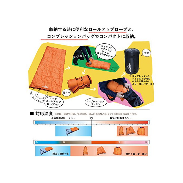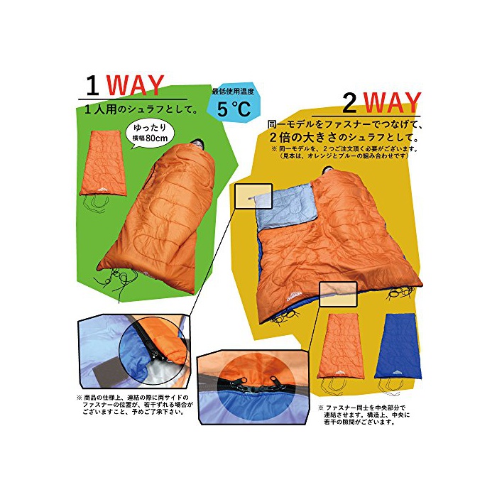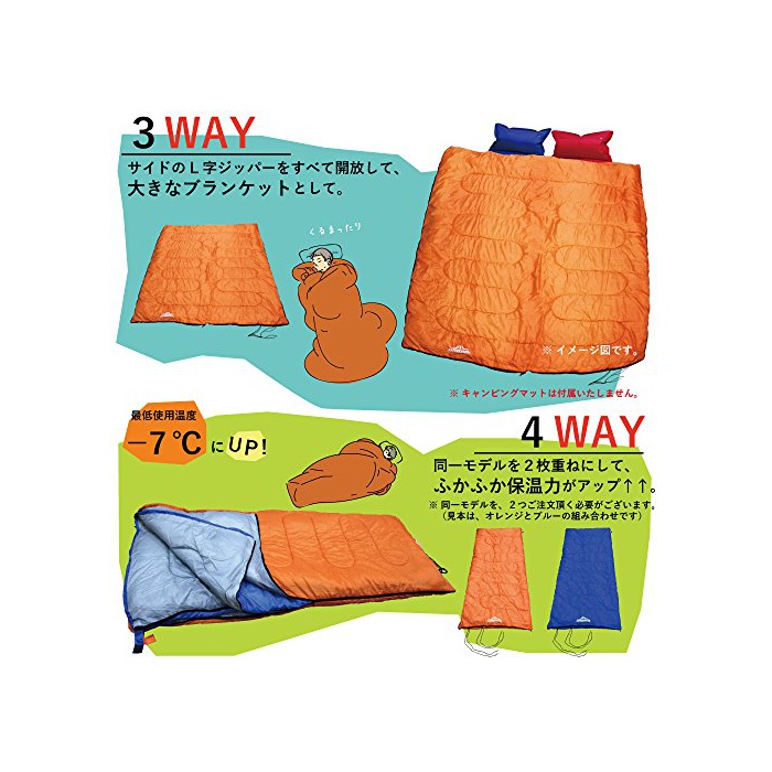 DABADA(다《바다》) 침낭 통째로 세탁 침낭 봉투형 4WAY 《슈라후》 슬리핑 백 [최저 사용 온도5도]