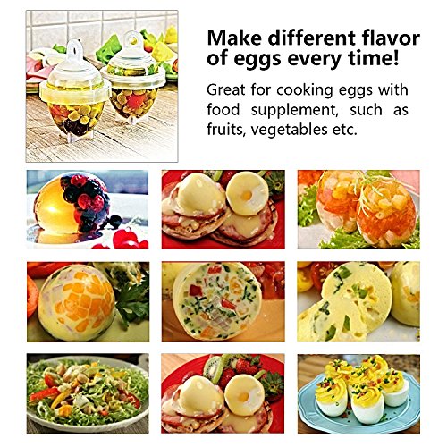 ★【Wide Application】: Easy to make soft, medium, hard boiled eggs, scrambled eggs, mini omelettes, salads, egg benedict's and more. Package including: 6PCS egg boiler + 1PC egg separator.