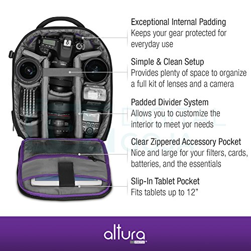 DSLR Camera and Mirrorless Backpack Bag by Altura Photo for Camera and Lens (The Light Traveler Series)