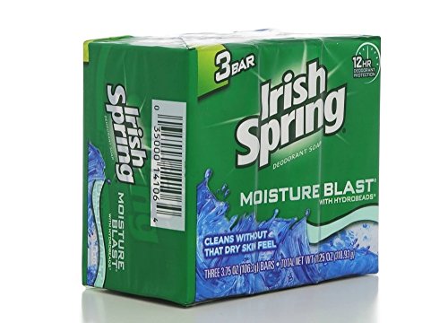 Irish Spring Moisture Blast Deodorant Bath Bar -- 4 oz. -- 3 ct. This deodorant soap delivers a moisture blasts that yields a terrific clean without that dry skin feel. Hydro beads instantly dissolve on your skin as you shower, helping retain your skin's natural moisture. It has a great, revitalizing scent. 0 |