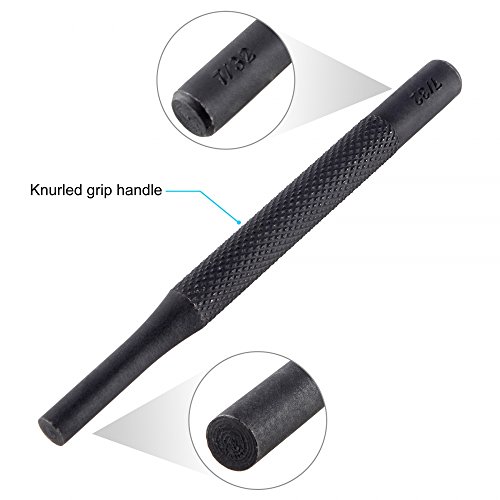 COMPLETE RANGE of SIZES: 8 pieces pin punch set including 1/16”, 3/32”, 1/8”, 5/32”,3/16”, 7/32”, 1/4”, 5/16”and 3.94inch long