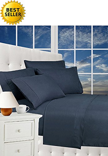 Wrinkle Resistant Luxury 6-Piece Bed Sheet Set - 1500 Thread Count Egyptian Quality Silky Soft Best Seller Sheet Set - Full, Navy Blue