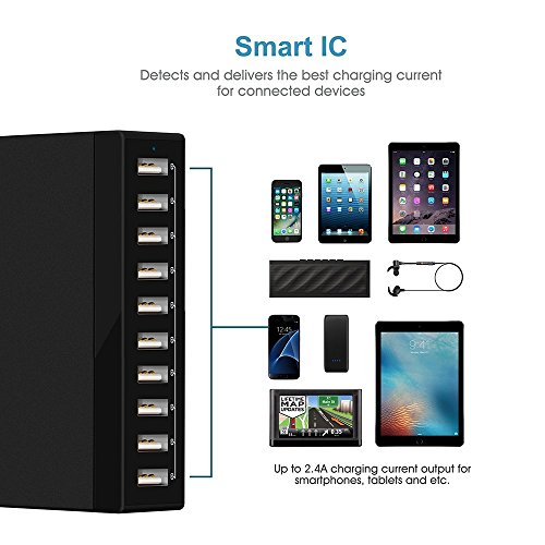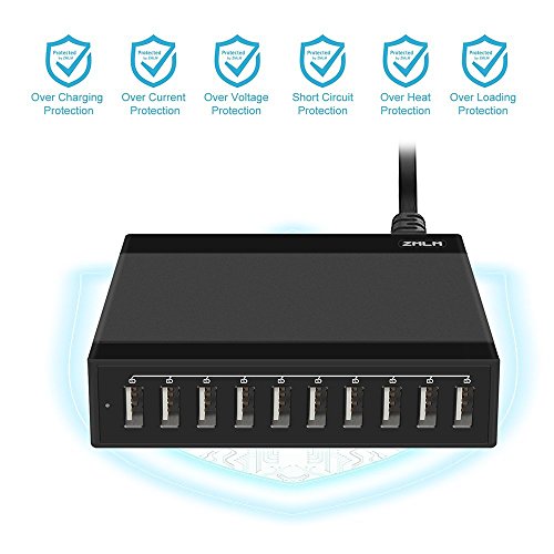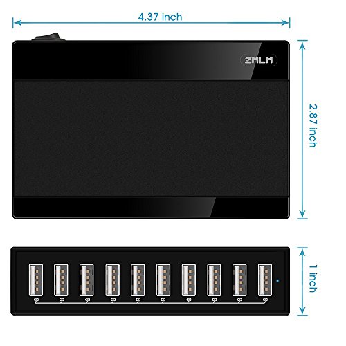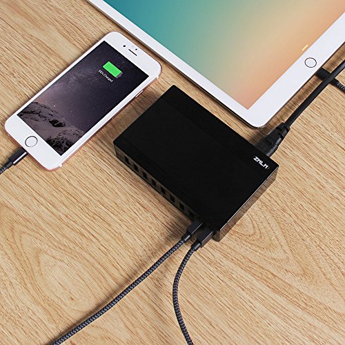 Desktop Charger,ZMLM 60W/12A 10-Port USB Charger,Wall Charger with Smart IC for iPhone 7/7Plus, iPhone 6/6 Plus, iPad Air 2/Mini 3, Samsung Galaxy S6/S6 Edge and More