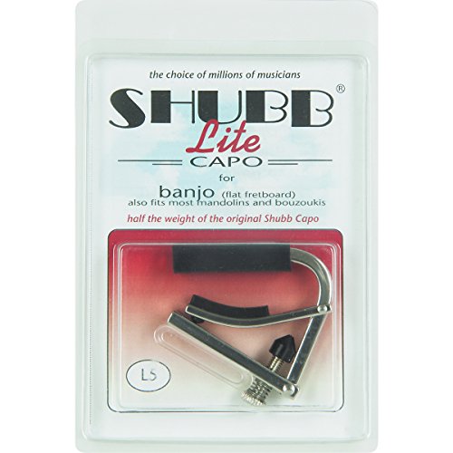 Studio : Shubb Publisher : Shubb Binding : Electronics Product Description The Shubb Lite lightweight aluminum capo is for you if you're into reducing the weight of your banjo, mandolin or bouzouki. What makes the lightweight Shubb capo so special? For one thing it has an ingenious design: its patented locking action provides unrivaled power, speed, accuracy, and ease of use. One smooth flip of the lever locks the Shubb Lite capo securely in place and removes it just as quickly.Additionally, the Shubb capo doesn't create tuning problems. Its soft, resilient rubber is specially designed to work just like a fingertip, so the capo doesn't bend the strings over the frets. Its closing action is just like your hand, so the Lite capo doesn't pull the string off center. As a result, no retuning is necessary!Is a lightweight capo for you? Maybe, or maybe not. Some people associate a certain amount of heft with quality, and feel that weight is necessary to properly do the job. If that describes you, then a lightweight capo isn't your style. But for years, Shubb has been aware of another school of thought wherein guitarists have been removing mass from their Shubb capos in an attempt to reduce their weight.One thing is certain: if you often carry your capo around in your pocket, your trousers will prefer the Shubb Lite! The Shubb Lite capo for nylon-string guitars is made from aerospace-quality aluminum and is nickel plated. It weighs less than one ounce. Since 1980, Shubb capos have set the standard against which all others can be measured. Shubb capos are the first choice of more than a million musicians worldwide. Serious guitarists will settle for no less.Precisely machined and carefully hand assembled, the Shubb Lite capo is manufactured without compromise. Snapping it solidly onto a guitar neck and then removing it will instantly confirm the capo's reputation of excellence. 0