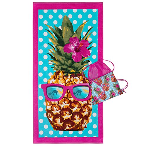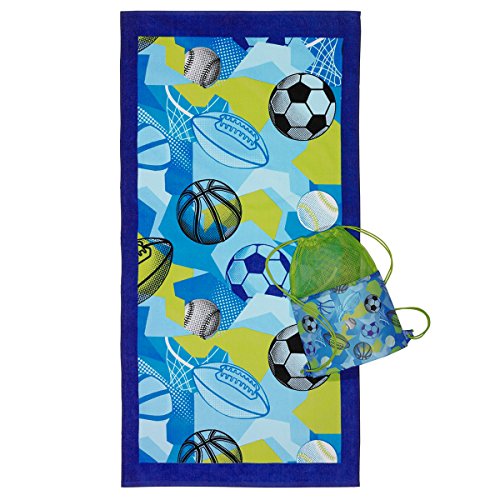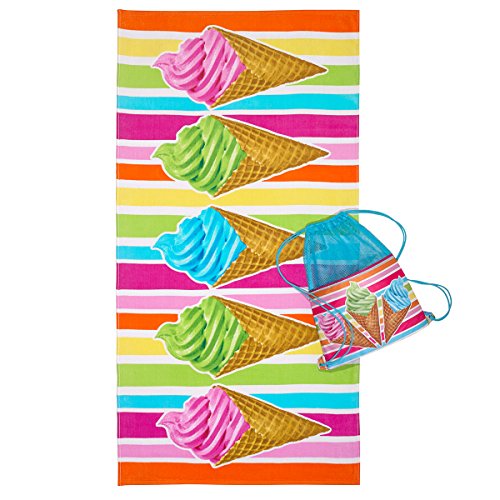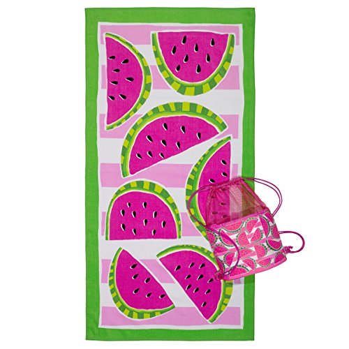 2-Piece towel & bag set includes a 100Percent Cotton terry velour full size beach towel