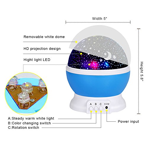 - The stars were cast on the ceiling when the light on, showing an unforgettable night you can share with you family or friends. With removable white dome, you can operate it as a night light or projection show of the moon and stars.