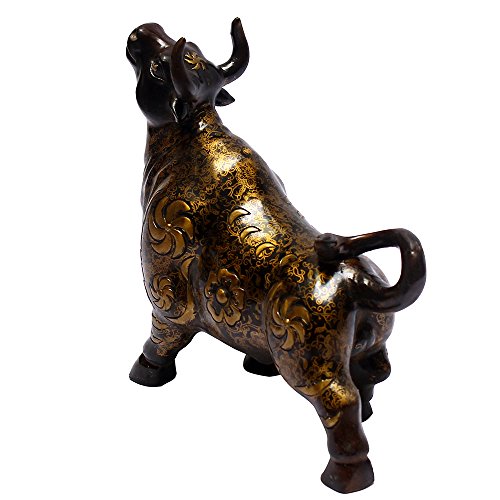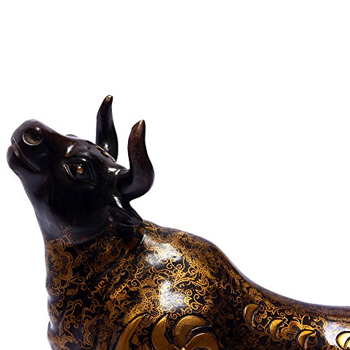 -. Feature : Best distinctive gift for Christmas, a good personal collection / Golden color, made of copper, Length 11.4'', width 4.7'', height 10'' / Bull brings the chi of wealth, success, confidence, strength and power / Metal material, very strong, durable, easy to clean up / Exquisite workmanship, combination of tradition and modernity,display on office table or shelf for career success purpose