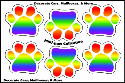 Imagine This 1-3/4-Inch by 1-3/4-Inch 6 Mini Paws Car Magnet, Rainbow