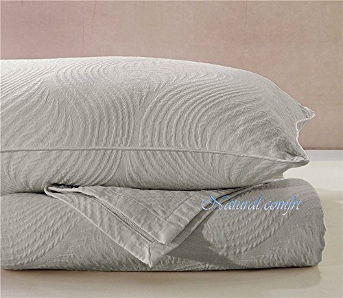 Natural Comfort Matelasse Blanket Coverlet, Dune Pattern, Queen, Light Grey