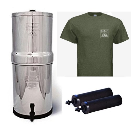 -. Title : Royal Berkey Stainless Steel Water Filtration System w/ Berkey Green T-shirt and 2 Black Filters