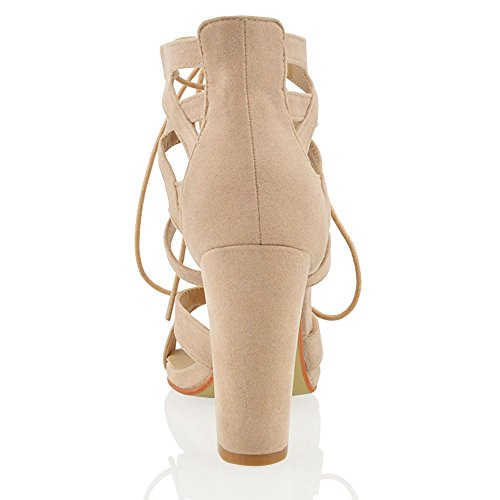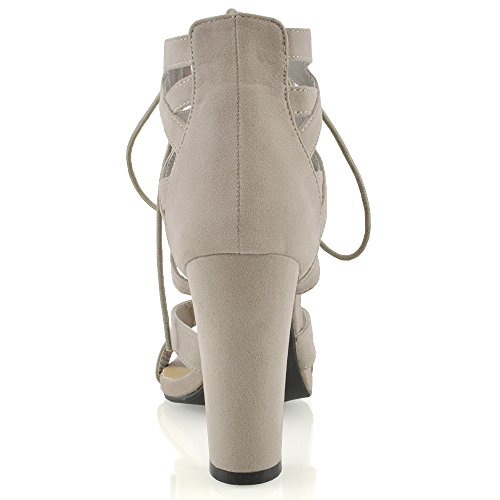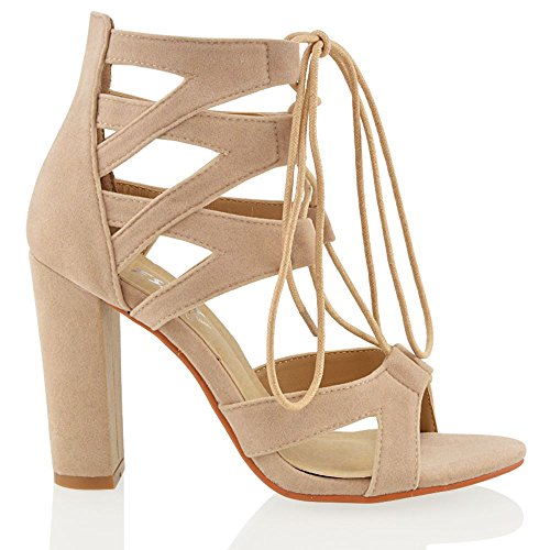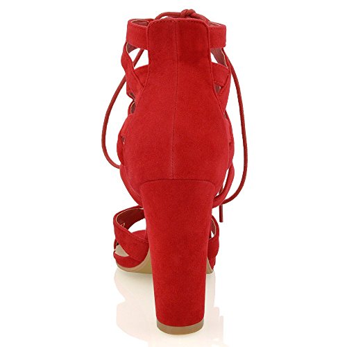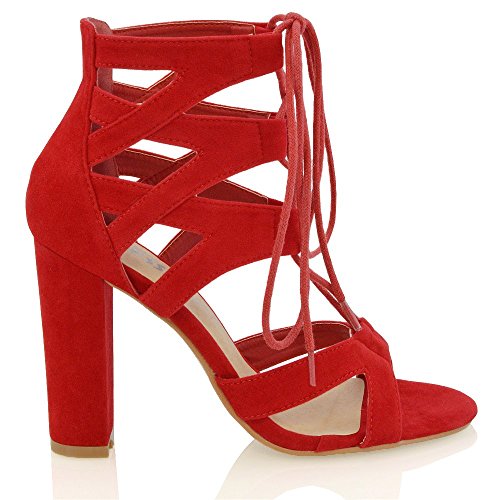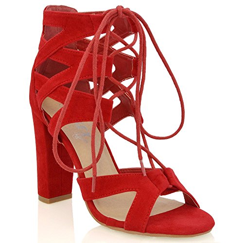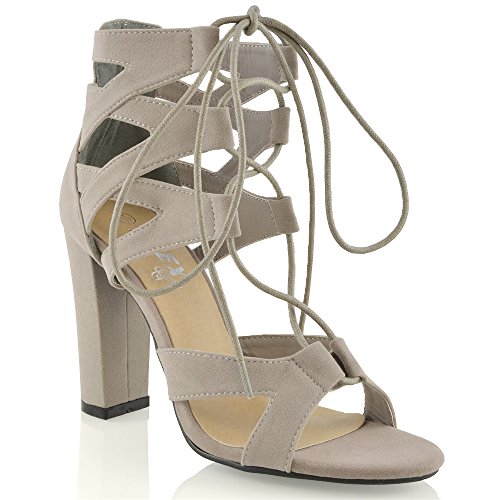 Studio : ESSEX GLAM Publisher : ESSEX GLAM Binding : Apparel Product Description Essex Glam - Women's Cut Out Lace Up Sandals - High Quality Materials - Cross Over Details On Ankle Strap - Lace Fastening - 3.9 Inches / 10 CM Heel - All measurements are approx. based on a UK size 4 / EU size 37. Please note that measurements above may vary by size.