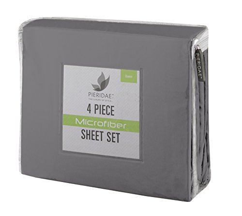 Double Brushed Microfiber Solid Bed Sheet Set By Pieridae - Hypoallergenic, Fade and Wrinkle Resistant - 4 Pc Sheet Set - Grey, Full