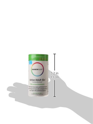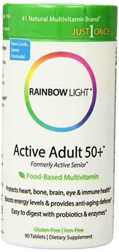 -. Binding : Health and Beauty -. Brand : Rainbow Light -. EAN : 0021888109920 -. Feature : A nourishing vitality blend of vegetables, including kale, beet, and organic spirulina, provide concentrated nutrition for older adults / Potent metabolic co-nutrients including a b-complex blend to support energy, stress and brain health, lutein and lycopene for tissue-specific antioxidant protection, along with 1,000 IU vitamin d3 for heart and bone health / Enzymes and 25 million CFU probiotics, support natural digestive balance and immune health -. Label : Rainbow Light -. Manufacturer : Rainbow Light -. Model : 10992 -. MPN : 10992 -. PackageQuantity : 1 -. PartNumber : 10992 -. ProductGroup : Pantry -. ProductTypeName : HEALTH_PERSONAL_CARE -. Publisher : Rainbow Light -. ReleaseDate : 2015-05-28 -. Studio : Rainbow Light -. Title : Rainbow Light Active Adult 50 Plus Multivitamin, 90 Count -. UPC : 021888109920