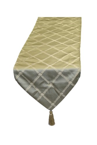 -. Feature : Update your home decor with this attractive table runner . / Table decoration with attractive damask Diamond's designs will add a fresh touch any room / Table runner is accented with gold tassels on each end / Available in beige, gold, Green or burgundy color options, 100-percent polyester / Machine Washable, Imported .