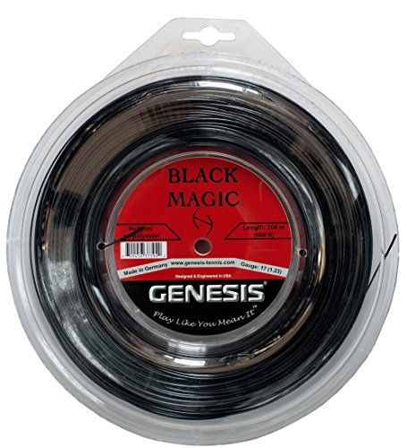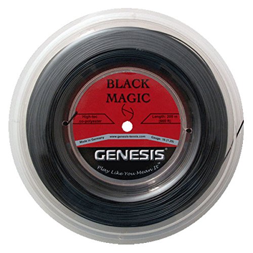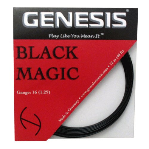 Studio : Genesis Publisher : Genesis Binding : Sports Product Description Black Magic leads the pack among co-polyester strings on the market today. Offering a superb balance of power and control, Black Magic is bound to raise your game to a new level. This string excels when it comes to feel. Most polyester strings today have one major flaw: they have no feel. Black Magic is the answer. Softer than most co-polys, this is a great string for players that are looking for a comfortable poly offering a serious punch. Tension maintenance is excellent. This thinner gauge provides added power and playability. 0