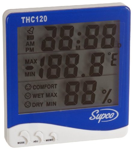 -. Title : Supco THC120 Triple Display Indoor Digital Thermo-Hygrometer with Clock, 32 to 120 Degrees F