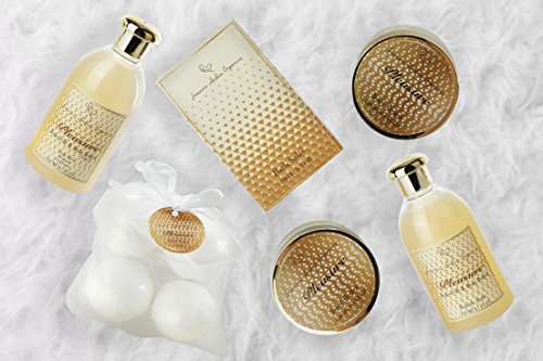 -. Feature : LUXURIOS GIFT BASKET- Are you looking for a high end, luxury gift for wife, friend or family? Are you searching for that elusive Birthday Gift, Thank You Gift or Holiday Gift that will simply wow your recipient? Your search is over! Because this premium gift package includes everything your loved one needs - to look beautiful & feel pampered. Plus, the wooden keepsake basket is so beautifully presented that no one could resist. / INTOXICATING FRAGRANCE- The caress of tangy tropical scents, a blend of sweet mangos and tart pears stir dreams of escape to far off islands where the shimmering sapphire sea laps at the edge of sun-warmed beaches. Moments is perfect for all the special times in life, Our signature Pleasures scent is an unforgettable experience! Try it and see for yourself! / ALL NATURAL & PURE: Safe and healthy for even the most sensitive skin! Our products have no parabens, alcohol, sls, or any harmful chemicals. In fact, we use only natural ingredients! Our products are Eco Friendly, Vegan & of course we never test on animals. / SUPERIOR FORMULA .Joanne Arden Skin Care & Hair Care Gift Baskets are way beyond your typical Spa Gift Baksets, they are a Total Spa & Salon Hair & Body Care Kit! Our skin & hair loving ingredients include Shea Butter & Pure Moroccan Argan Oil! That's why our 3-in-1 Shampoo, Body lotion, & Bath Bombs are so hydrating& nourishing, they make your skin & hair glow! / SUPERIOR QUALITY - Handcrafted to perfection with attention to craftsmanship and detail this Wooden Chest Gift Box is elegant & versatile. It can be used in many different ways such as storing a variety of items in a powder room, bathroom or bedroom. It is the perfect size to make any recipient feel pampered and special. We know it is hard to choose the perfect beauty gift basket online, so we make it easy for you with our complete satisfaction guarantee.