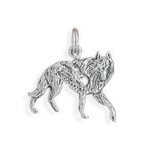 -. Title : Oxidized Sterling Silver Wolf Charm Measures 22mm