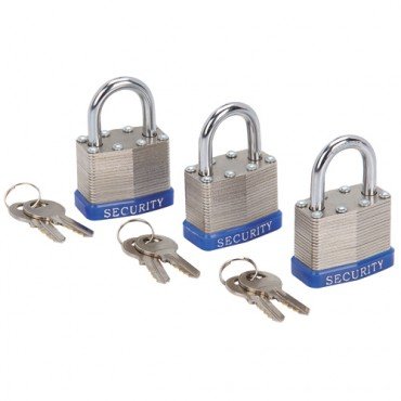 3 Piece 1-1/2" Keyed-alike Padlocks Each Key Opens All Three Steel-plate Padlocks
