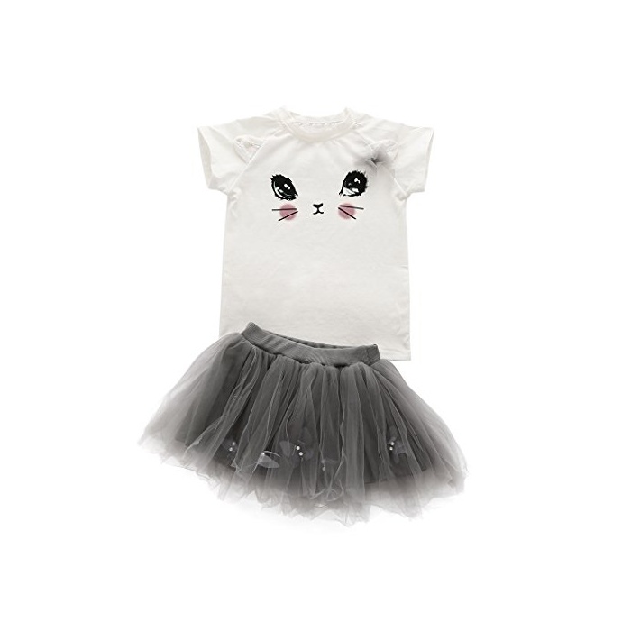 MIOIM T셔츠&팬츠 톱스 키즈 걸즈 상하 세트 아동복 탱크 탑 스커트 망사(Tulle) 노슬리브 베이비복 소녀 화이트