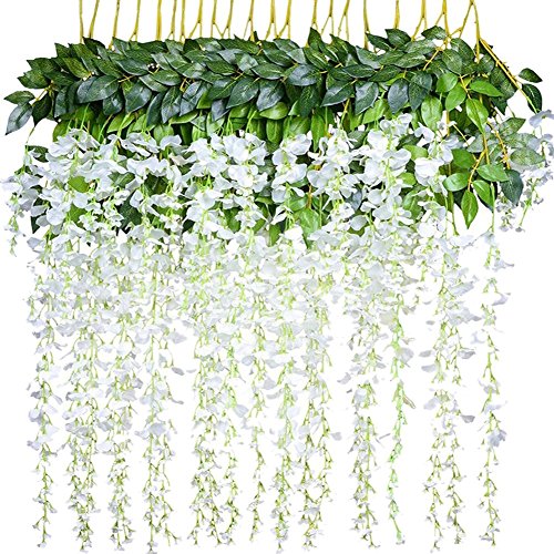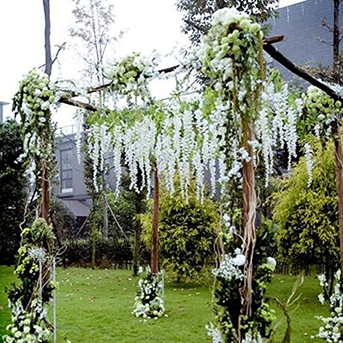 - Natural-looking flowers:Wisteria Garland with full and soft petals,vivid realistic and lifelike,looked more natural and beautiful,perfect for your wedding decoration.Let you have a dream wedding hall with perfect flowers,friends and relatives immersed in the glorious flowery palace to enjoy the good times.
