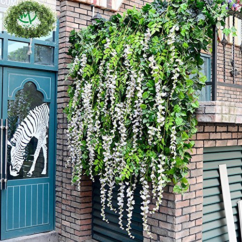 - Romantic Classic:Realistic English Artificial Fake Wisteria Vine Ratta Silk Flowers for Garden Floral Decoration DIY Living Room Hanging Flower Plant Vine Home Party Wedding Simulation Decor ,total 12 Pcs, 43 Feet.
