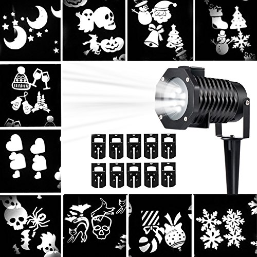 Halloween Projection Lights Led Projector Light, Kohree Outdoor Light Snowflake Spotlight 10 Pattern Sparkling White Landscape Lights for Holiday Party Waterproof